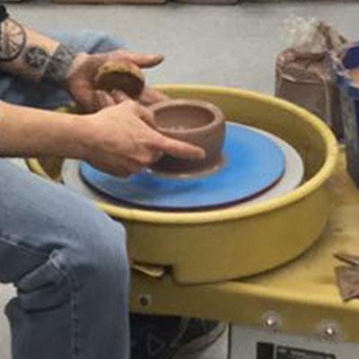 Access to the Art Center pottery wheels only whenever there is not a class in session and during studio hours per session dates for experienced ceramists. Five types of clay are available to purchase at the Art Center.